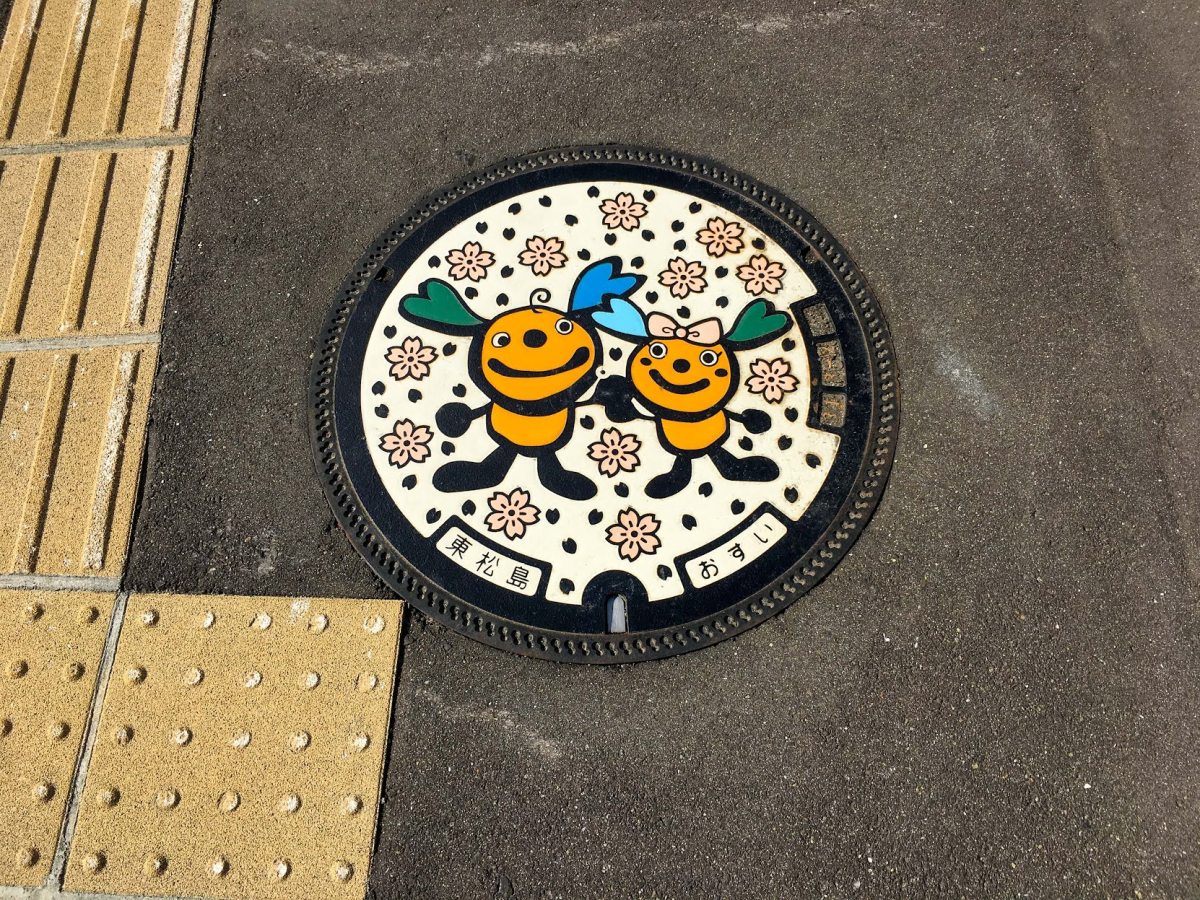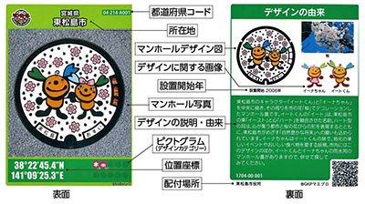 ↓こちらはJR野蒜駅前に設置してありますカードデザインの実際のマンホール蓋です。