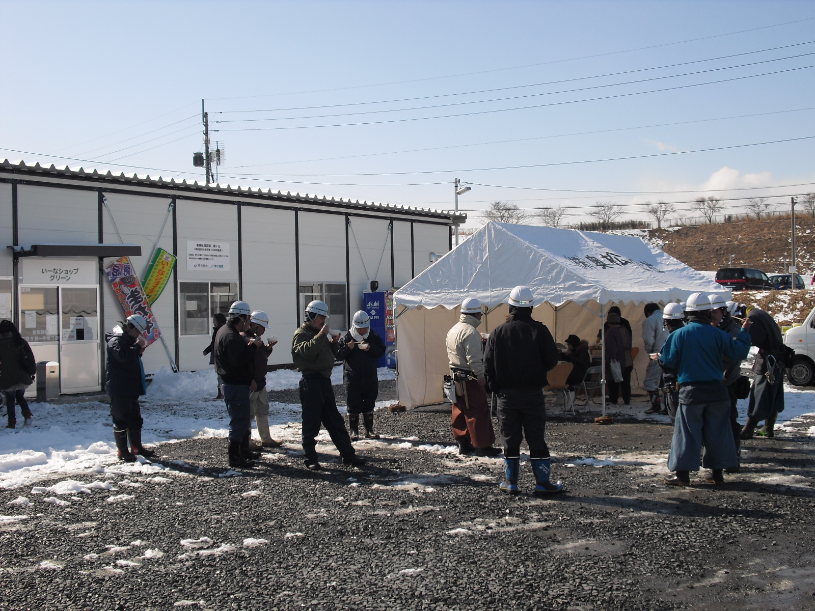 「17(い~な)の日」にちなんで カキ汁お振舞 を行いました。 い~なショップ グリーン の店頭にて、日頃ご利用いただいている方に 召し上がってもらい、大変喜んでいただきました。 (冷たい風吹く中、皆さん笑顔(^-^)でした。) 今後もいろいろとイベントを催して行きたい、と考えております。 来月(3月)の「い~なの日」の内容が決まり次第、書き込みしますので お楽しみに!