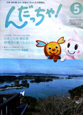 まずは地元石巻日日新聞が発行する「んだっちゃ!5月号」。東松島、石巻、女川地区に無料配布される生活情報誌の巻頭特集に、ベテラン船長である阿部守忠船長のインタビュー記事が4ページにわたって掲載されました。