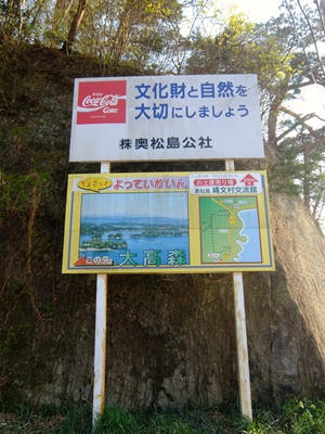 看板と言えば大高森手前のトイレ駐車場には、コカコーラと当社が協賛した、こんな看板もあるが、建てられた経緯を知る人は少ない。出来ればコカコーラさんの了解を得て、案内所の存在を大きな広告塔の下に表示したいところ。