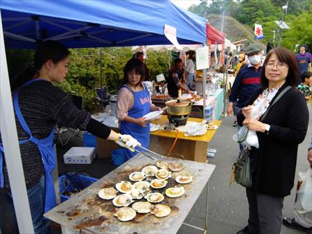 公社の出店は開店から列ができ、出血大サービスの焼きホタテ、あさりめし、あさり汁の全てが完売となりました。とりわけ新鮮で大粒のホタテがタッタの150円という評判がクチコミが広がり、最初の50枚があっという間に売り切れました。あと50枚追加するもこれまた30分で売り切れたので再び追加仕入れして、2時間で200枚を完売することとなりました。貝焼きのニオイを全身に浴びながらも、来店者に喜んでもらた気持ち良い満足感に浸ることのできた1日でした。