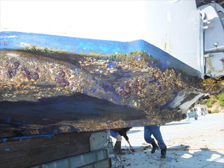 DSCF9662_Rフジツボは船の天敵です。船底というのはスキー板の滑走面と同じで、付着物があると滑りが悪くなります。船底に貝類や藻などの付着物が付き始めると燃費が悪くなって、スピードが出ないという状況に陥ることとなる。