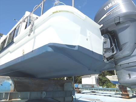 DSCF9675_R一番付着物の多かった船尾部分も、新品のような輝きです。船外機周りも綺麗になり、気分一新で嵯峨渓をご案内いたします。